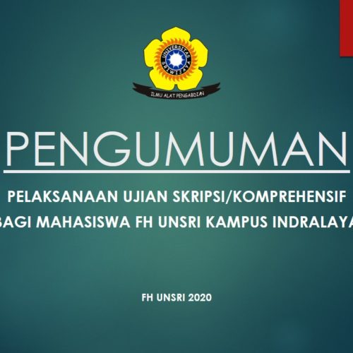 Diberitahukan Kepada Seluruh Mahasiswa Fakultas Hukum Universitas Sriwijaya Kampus Inderalaya Bahwa pelaksanaan ujian skripsi/komprehensif mahasiswa kampus inderalaya akan dilaksanakan pada