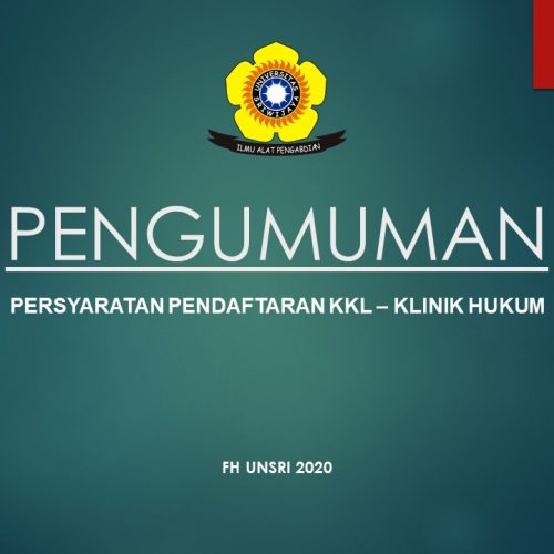 Bagi mahasiswa/i Fakultas Hukum Unsri yang ingin mengikuti KKL – Klinik Hukum Semester Ganjil TA. 2020-2021 persyaratan pendaftaran dapat diunduh
