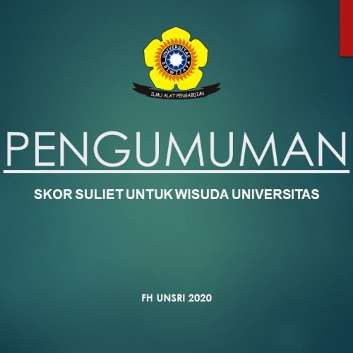 Palembang (08/2020) – Fakultas Hukum Universitas Sriwijaya Sukses melaksanakan Yudisium, Pelantikan dan Pelepasan Sarjana Hukum Ke-148 dan Ke-149, Magister Kenotariatan