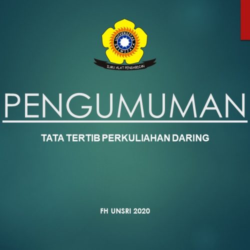 Dalam rangka pelaksanaan perkuliahan Daring dilingkungan Fakultas Hukum Universitas Sriwijaya, diberitahukan kepada Mahasiswa/i Fakultas Hukum Universitas Sriwijaya Kampus Indralaya dan