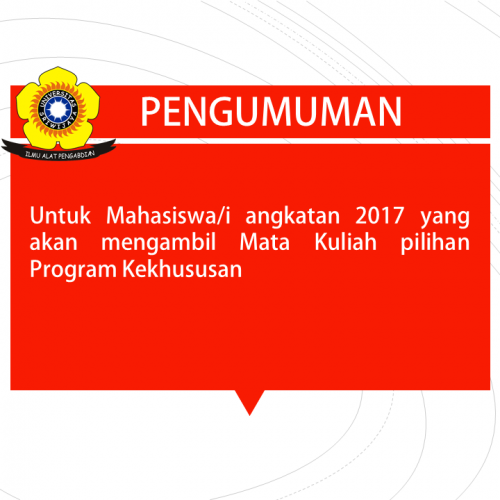 Untuk Mahasiswa/i angkatan 2017 yang akan mengambil Mata Kuliah pilihan Program Kekhususan bahwa “TIDAK DI BENARKAN UNTUK MENGAMBIL MATA KULIAH