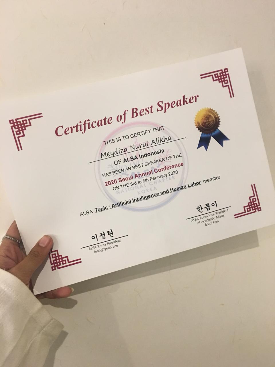Best speaker of theme artificial intelegent and human labour ,alsa conference korea 2020