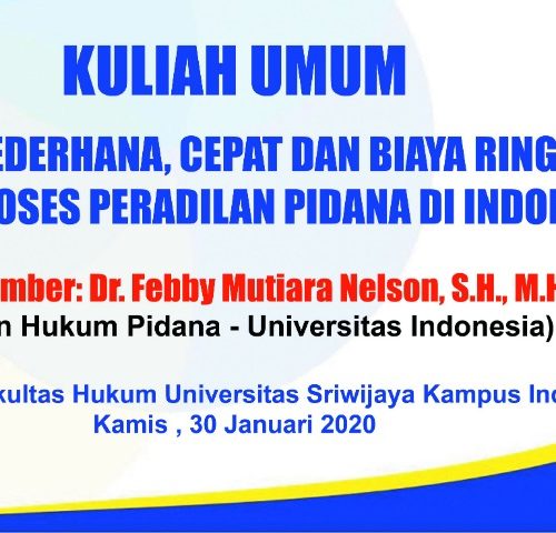 30 Jan 2020 admin KULIAH UMUM “ASAS SEDERHANA,CEPAT DAN BIAYA RINGAN DALAM PROSES PRADILAN PIDANA DI INDONESIA” LPM Media Sriwijaya, Inderalaya – Fakultas Hukum Universitas Sriwijaya (FH Unsri) kembali mengadakan kuliah umum, bertempat di ruang 118 FH