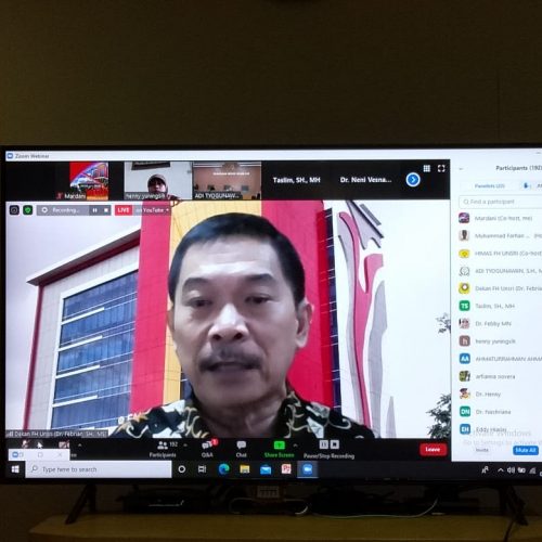Dalam rangka menyikapi kebijakan Pemerintah Dalam Penanggulangan Covid-19 Fakultas Hukum Universitas Sriwijaya menyelenggarakan kegiatan Webinar Nasional Hukum Pidana dengan tema