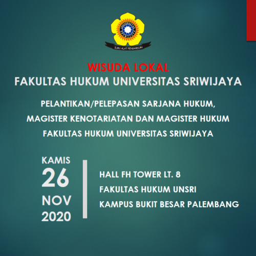 Pelaksanaan Wisuda Lokal Pelantikan/Pelepasan Sarjana Hukum, Magister Kenotariatan dan Magister Hukum Fakultas Hukum Universitas Sriwijaya Tahun 2020, yang akan dilaksanakan